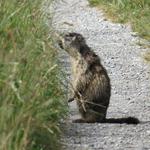ein Murmeltier hat uns noch nicht erspäht und sitzt direkt auf dem Wanderweg
