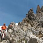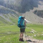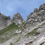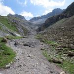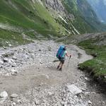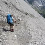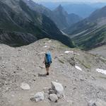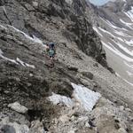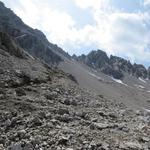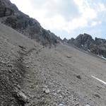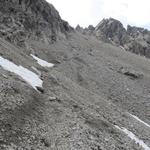über feines Geröll verlassen wir die Umgebung der Scharte
