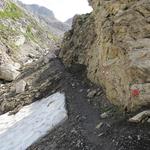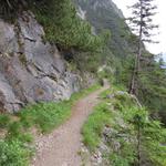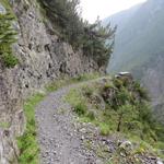 ganz eng an der Felswand führt uns der Pfad weiter abwärts