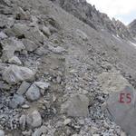 der E5 zieht nun über die Ebene und führt dort wo das Geröll ist, einen linksbogen