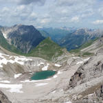 Blick zurück zur Memmingerhütte. Seht Ihr sie?