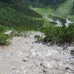 scheinbar endlos führt der steile Weg abwärts Richtung Oberlochalpe