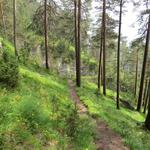der Wanderweg führt zuerst noch durch einen Tannenwald