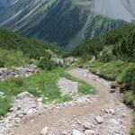 scheinbar endlos führt der steile Weg abwärts Richtung Oberlochalpe