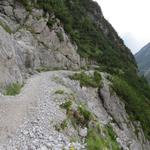 ganz eng an der Felswand führt uns der Pfad weiter abwärts