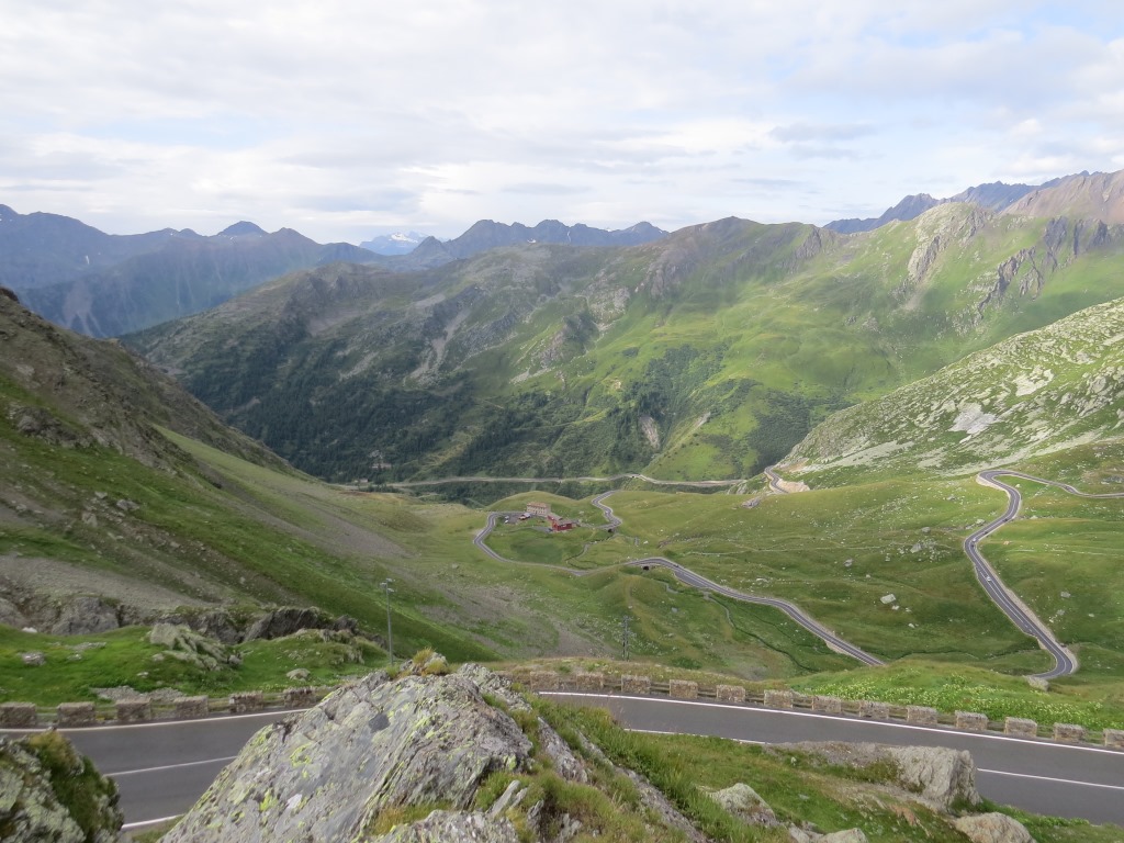 wir geniessen den schönen Blick auf das Tal und auf die Passstrasse mit seinen vielen Kehren Datum 29.08.2016