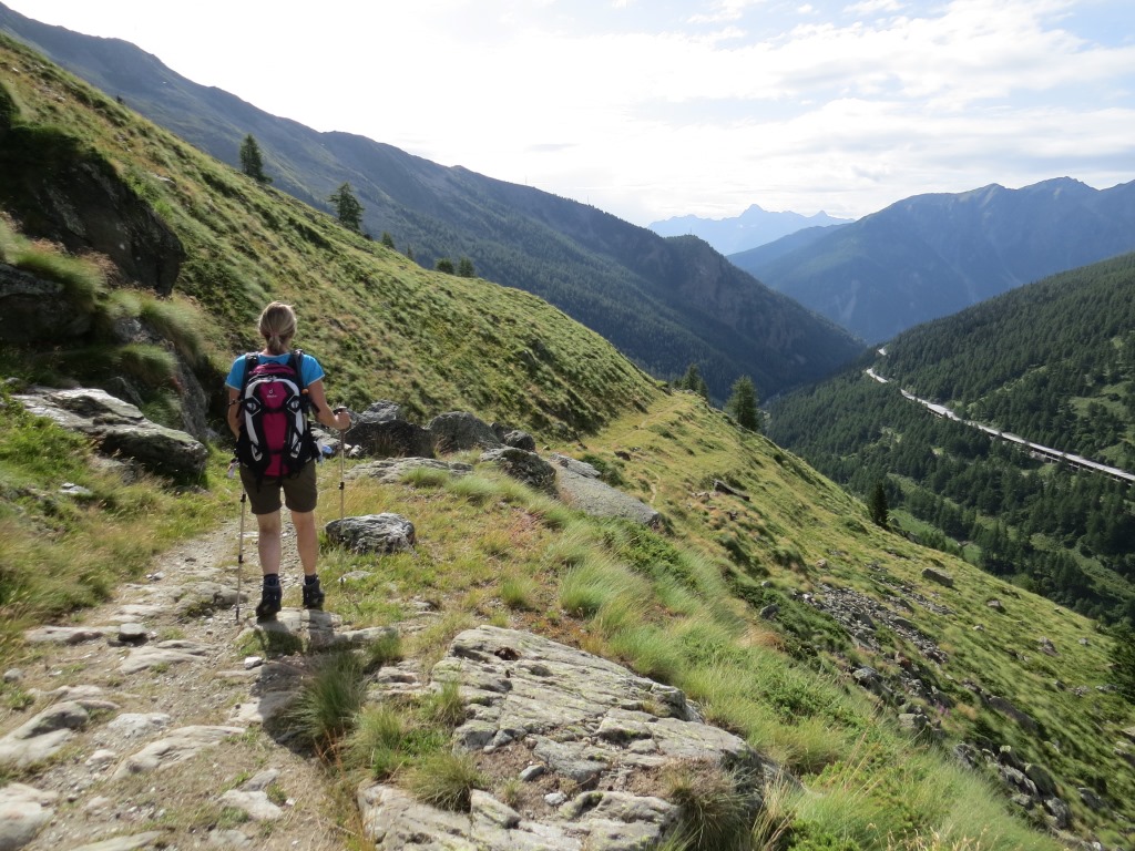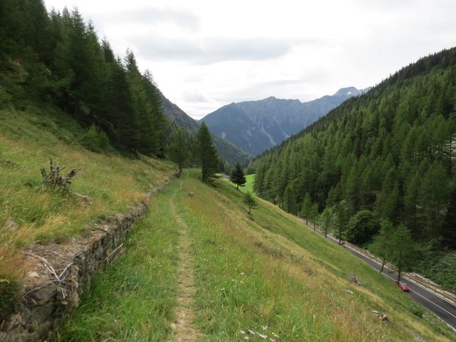 der Weg führt uns nun teilweise entlang der Passstrasse abwärts Datum 29.08.2016
