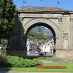 hier beim Triumphbogen hört unsere Etappe auf. Die folgende wird uns durch diesen Bogen aus Aosta herausführen Datum 26.09.2016