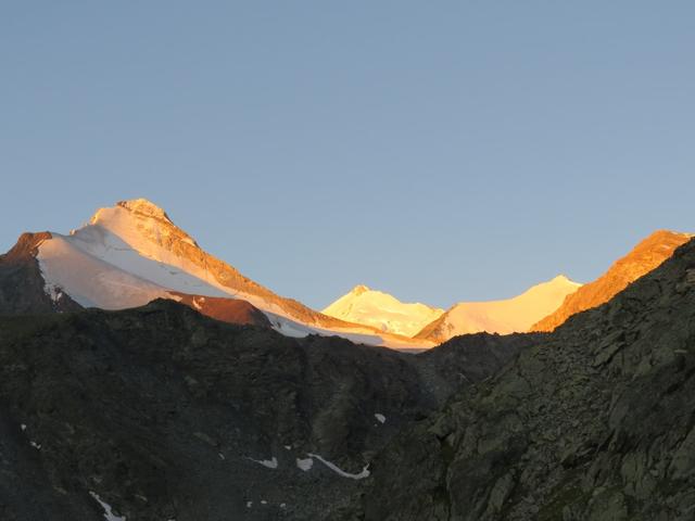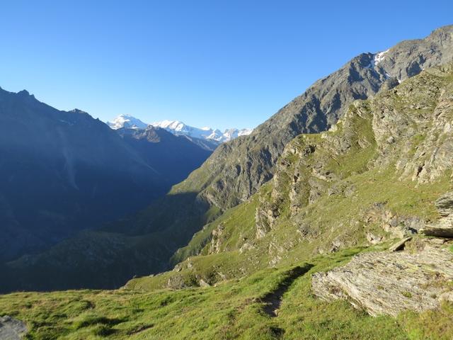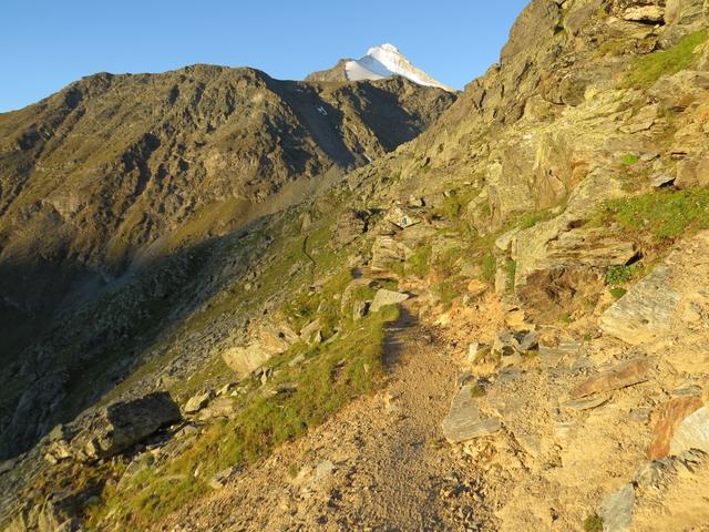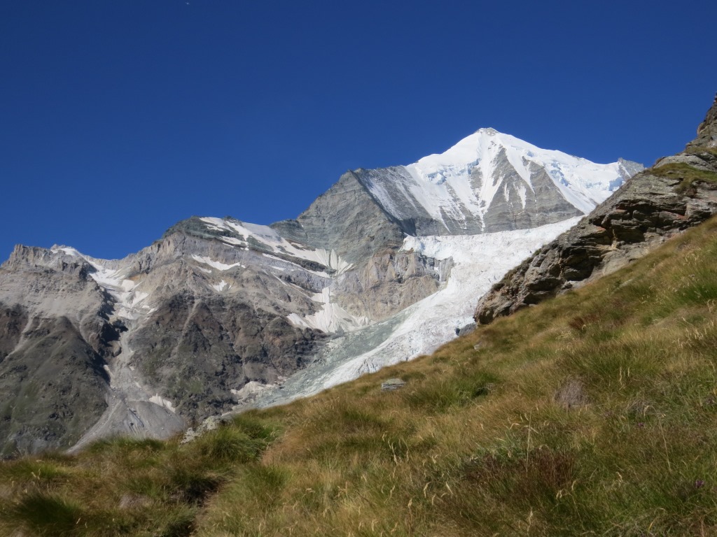 rechts von uns taucht ein anderer Bergriese auf, das Weisshorn mit seiner ganzen weissen Pracht