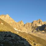 Blick in den eindrücklichen Felskessel des Tällis unterhalb des Schölligletschers. Links der Brunegghorn
