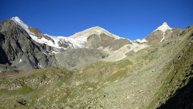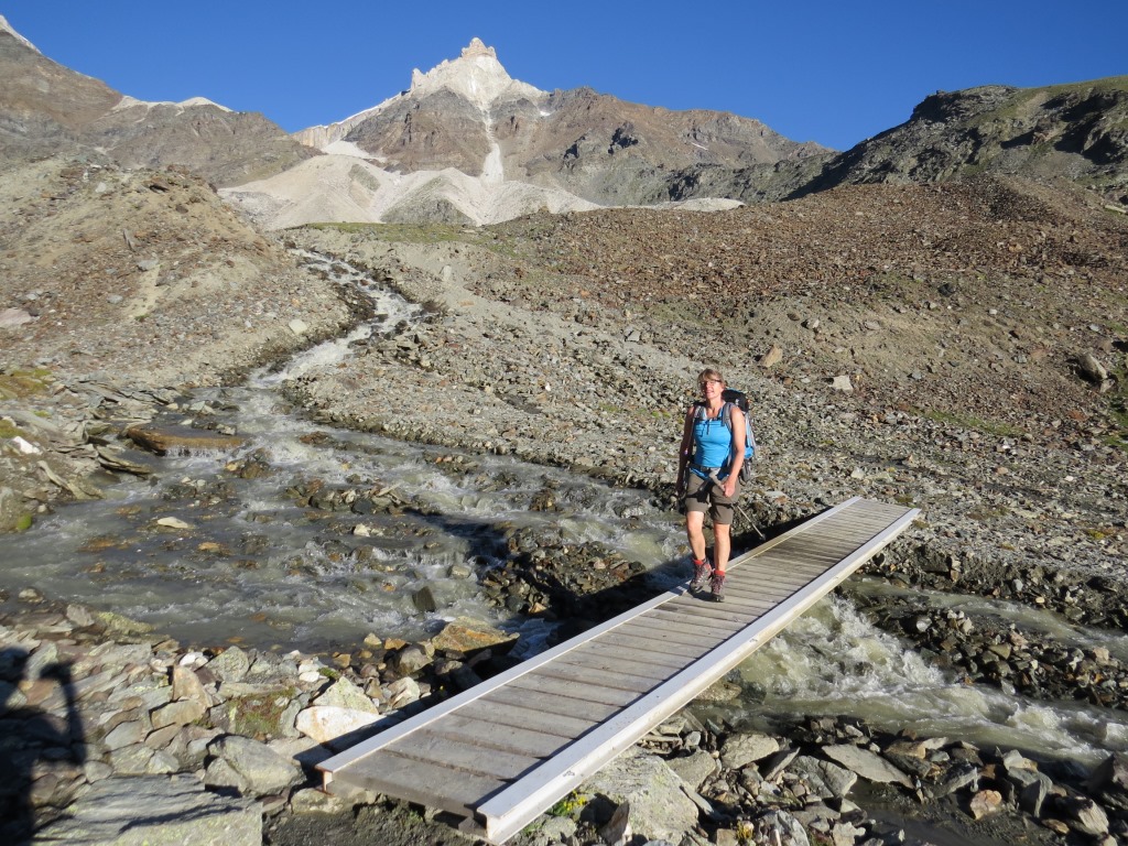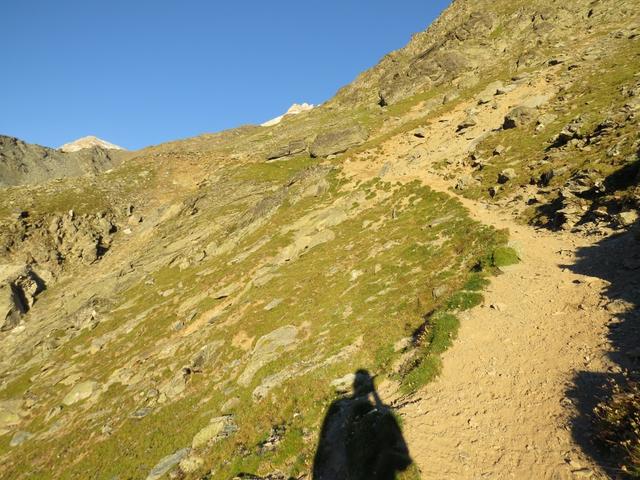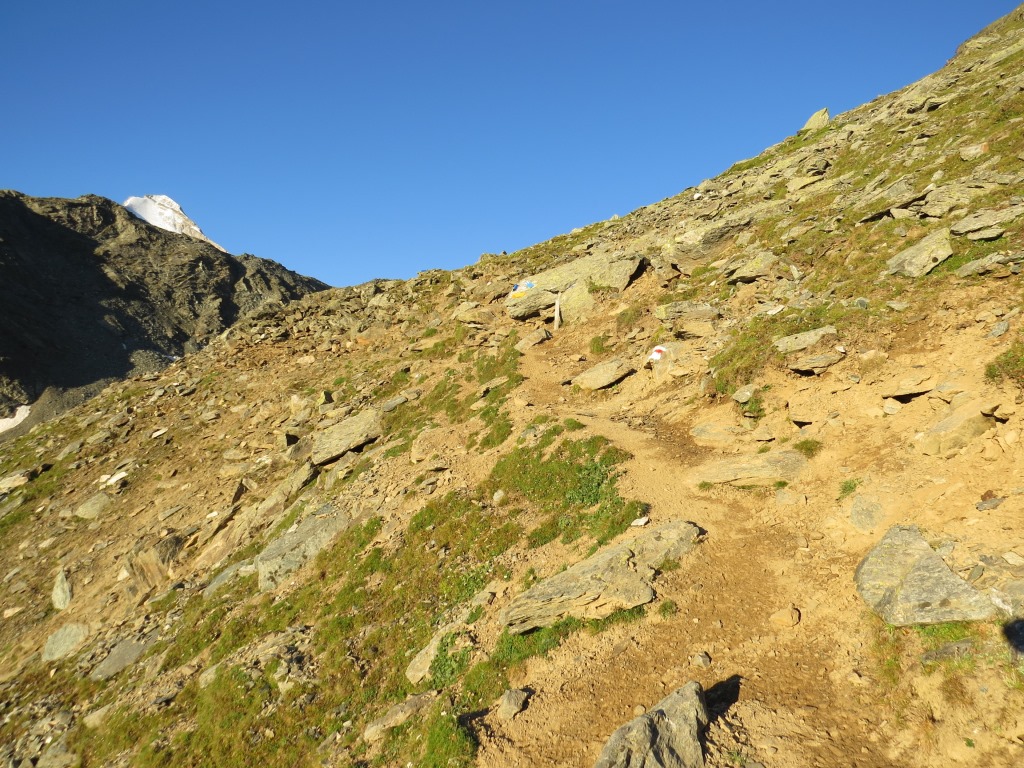 rechts führt der Bergweg über das Schöllijoch zur Turtmannhütte. Die haben wir auch schon besucht