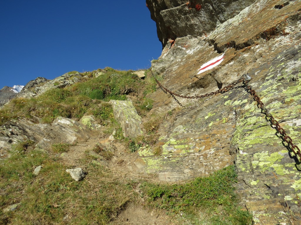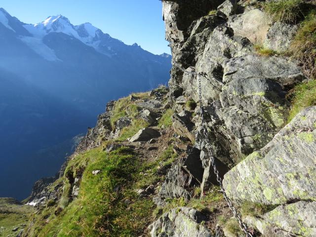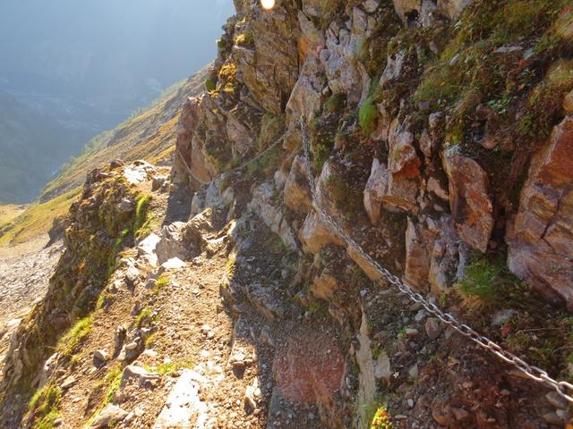 Trittsicherheit und Schwindelfreiheit ist ab hier für weite Strecke nun unbedingt erforderlich