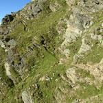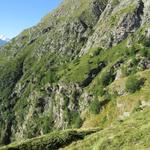 ... in die von Felsen durchbrochene steile Flanke, und zum Zwischenabstieg nach Heerbriggen 2232 m.ü.M.