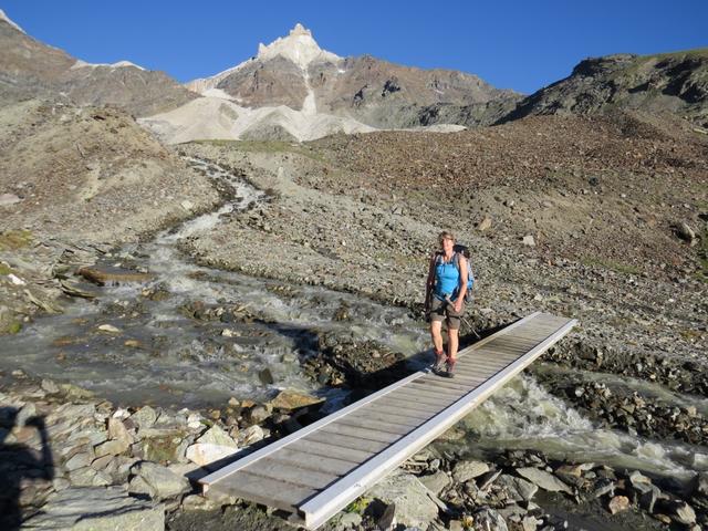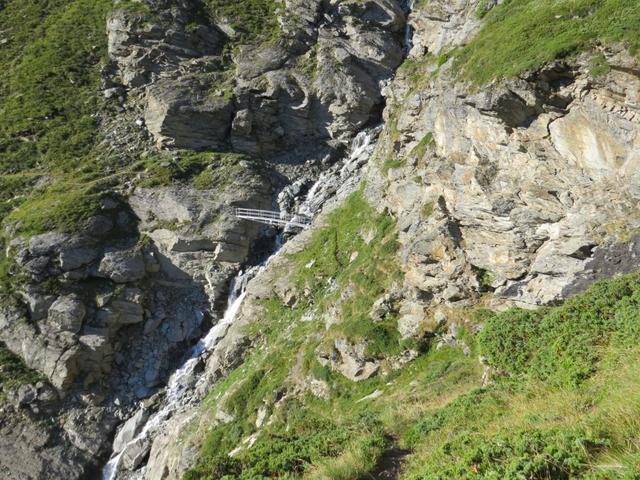 der Abfluss im breiten Talboden wird auf einem Steg überquert