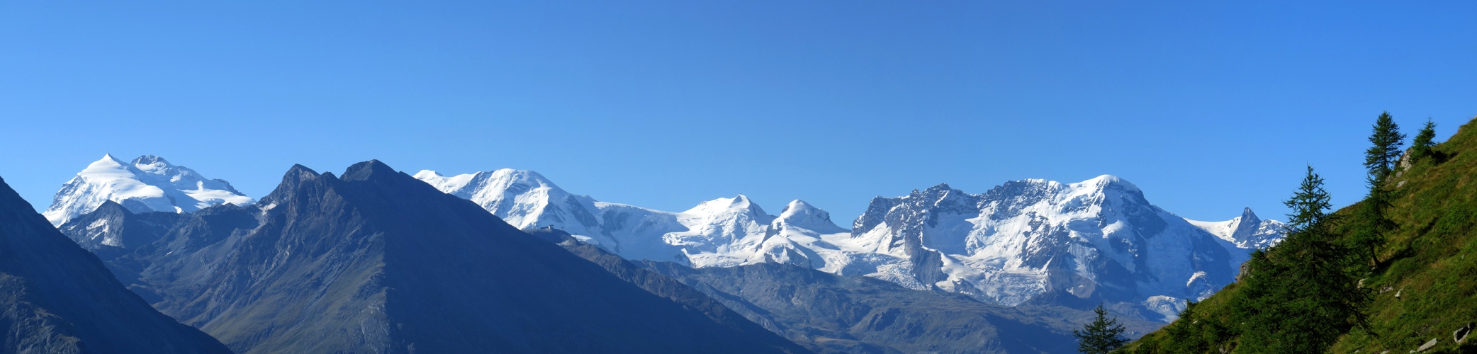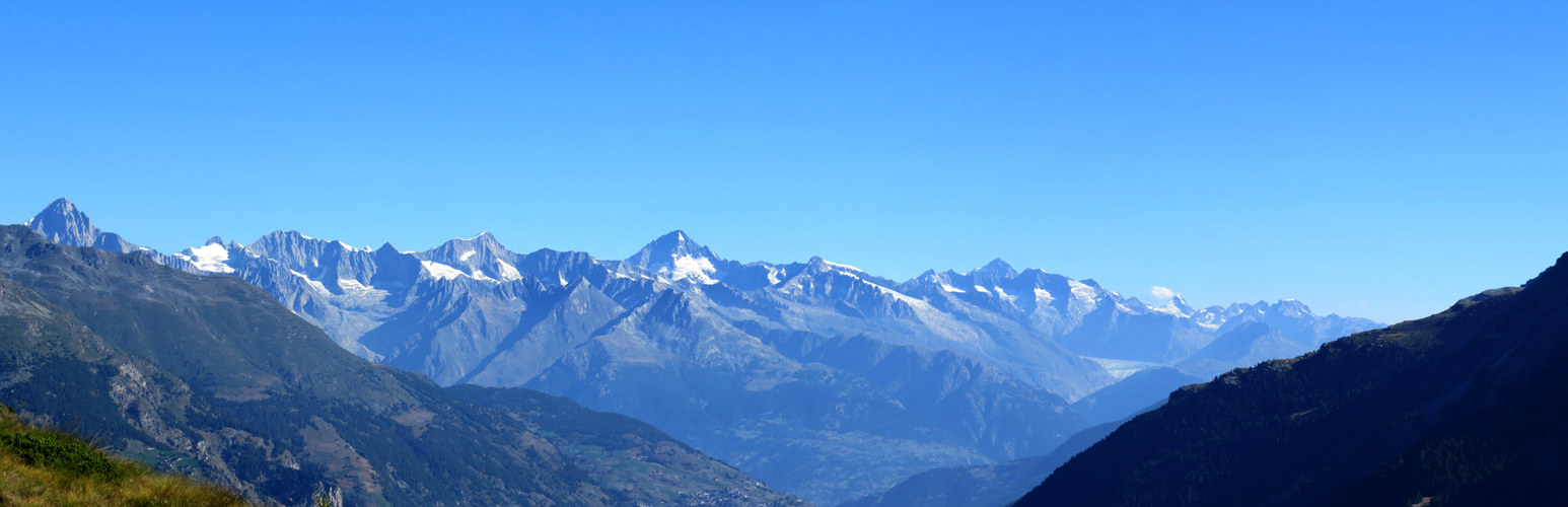 superschönes Breitbildfoto mit Bietschhorn links und Aletschhorn rechts