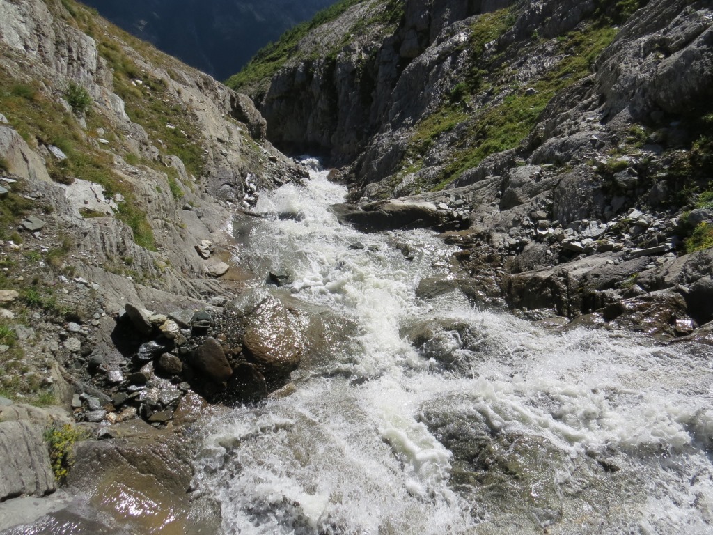 führt durch zwei kleinere Rinnen, und dann in den scharf eingeschnittenen Felsgraben...