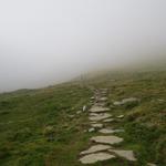 beim Oberalppass empfängt uns dichter Nebel. Bei der ersten Kurve nach dem Pass Punkt 1987 m.ü.M. parkieren wir das Auto Datum 13.06.2017