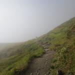 der nur noch zum Teil erkenntliche Bergweg ist hier steil und rutschig Datum 13.06.2017