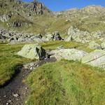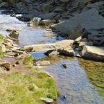 wir laufen aber nicht zur Weggabelung Punkt 2351 m.ü.M. hinauf, sondern biegen rechts ab, wo das Wasser den Tomasee verlässt Datum 14.06.2017