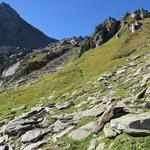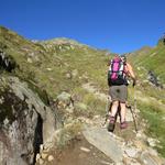 hier biegen wir links ab, und steigen über Wiesen mit Steinen versetzt, steil aufwärts Datum 13.06.2017