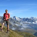 meine Maus auf dem Grat. Im Hintergrund Piz Tuma und Rossbodenstock Datum 13.06.2017