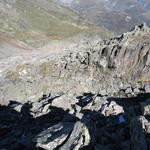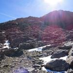 ...wo wir rechts über den Schuttkessel, Richtung Lai da Tuma abbiegen Datum 14.06.2017