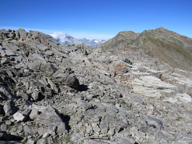 in einem weiten Rechtsbogen wandern wir um den Pazolastock, und plötzlich taucht vor uns der Piz Badus auf Datum 13.06.2017