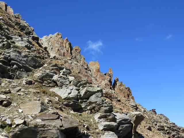 der Grat selbst besteht aus grobem Blockwerk und geschliffenem Fels... Datum 13.06.2017