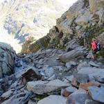 der Bergweg führt uns nun über einen Schuttkessel... Datum 13.06.2017