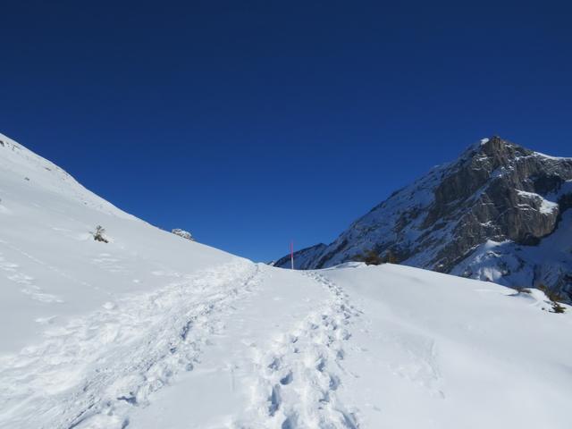 der Schneeschuhtrail ist vorbildlich markiert und immer gut ersichtlich Datum 12.04.2017