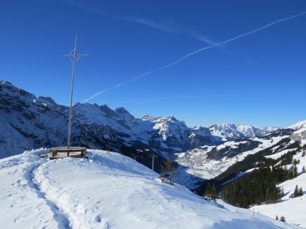 über den Titlis Trail laufen wir zurück zur Fürenalp, die vor uns ersichtlich ist Datum 12.04.2017