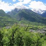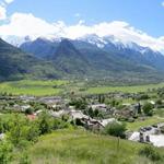Blick über Aosta hinaus, in die italienischen und französischen Alpen, die jetzt noch tief verschneit sind Datum 20.05.2017