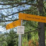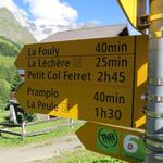Wegweiser beim Petit Col Ferret 2490 m.ü.M.