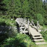 ...und überqueren kurz danach wieder über eine Holzbrücke den Bergbach Le Merdenson