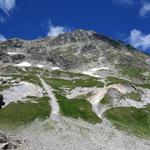 Blick hinauf zur Tête de Ferret. Rechts davon der Petit col Ferret