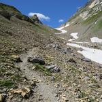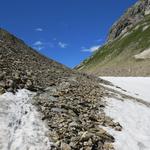 teils über Altschneefelder, teils über Geröll...