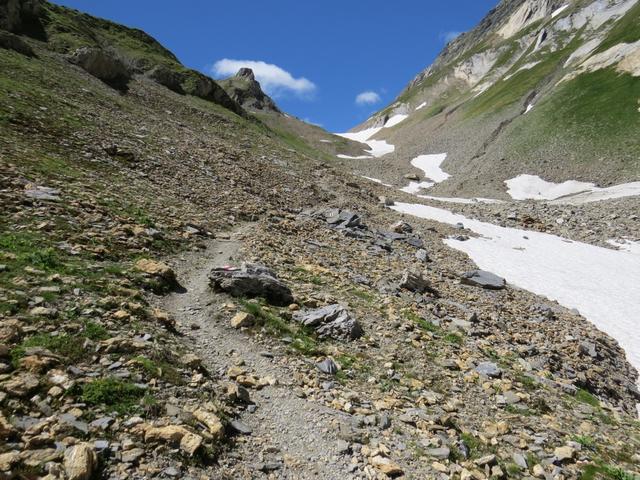 bei Punkt 2144 m.ü.M. geht es danach rechts in das kleine Tälchen von Taves du Dolent