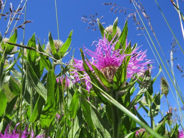 nach der Pause nehmen wir nicht den Wanderweg der ins Tal hinunterzieht, sondern wir biegen links ab...