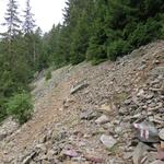 hier gut ersichtlich, wie extrem steil die Bergflanke in die Tiefe zieht