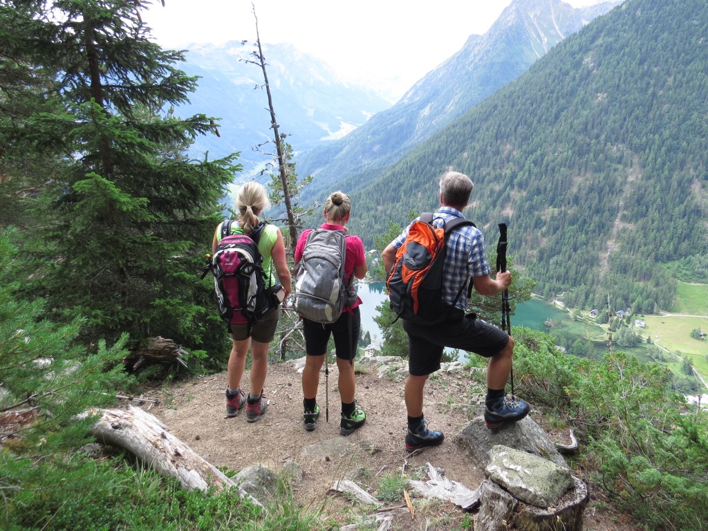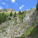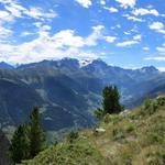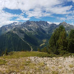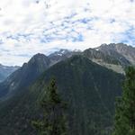der Bergwald gibt immer wieder einige schöne Ausblicke frei. Hier mit Blick auf La Breya und die Combe d'Orny