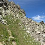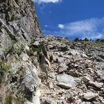 der Bergpfad durchquert nun die schrofige und steile Westflanke der Pointe des Chevrette
