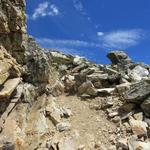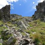 ...und wandern über grobem Blockschutt durch eine kleine Scharte