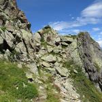 auf dem Grat angekommen, biegen wir links durch einen schmalen Felsdurchgang ab, und verlieren wieder leicht an Höhe