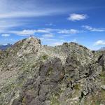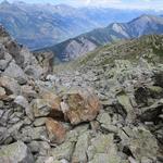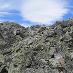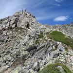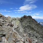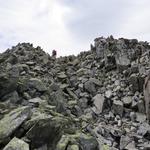 über Fels und Blockschutt geht es dem breiten Grat entlang...