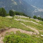 bei Punkt 2402 m.ü.M. macht der Bergpfad einen starken linksknick, Richtung Champex d'en Bas