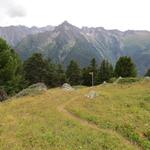kurz nach der Berghütte erreicht man über Alpwiesen die Weggabelung bei Punkt 1986 m.ü.M.