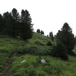 ...durch einen schönen Kiefer- und Lärchenwald stetig aufwärts