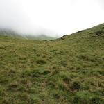der dichte Nebel lichtet sich langsam und öffnet den Blick ins Val Zavretta