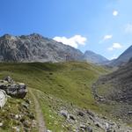 in einer nur wenig ansteigenden Querung, wandern wir weiter Richtung Alp Zavretta