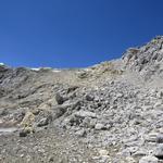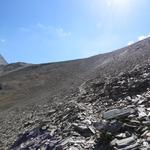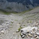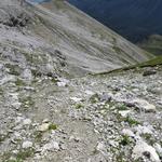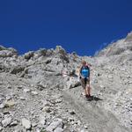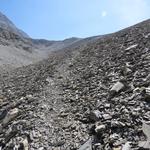 ... und steigen über den kurzen Schuttrücken auf guten Wegspuren...
